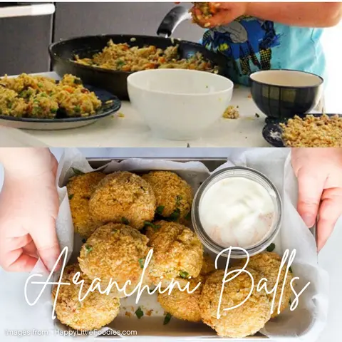 Whenever I made these arancini balls, the little ones LOVED them. And as a bonus, when they got older, they were also able to help me make them! (This recipe does require left over risotto, so here's another bonus easy recipe to make an easy risotto - Vegetable Risotto with Sun-dried Tomato - Healthy Little Foodies) PLUS I've added in a twist to make this dish EXTRA scrumptious! 😋