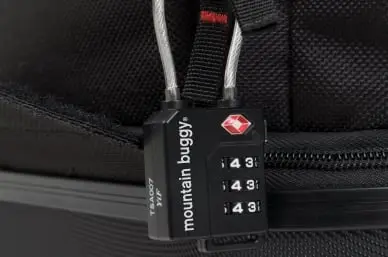 travel bags built in “gate checked” tag ensures your buggy is easily identifiable; and its durable base, sturdy zips and TSA approved padlock keep all pieces of your buggy together safely and securely.
