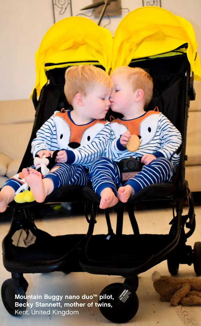 nano duo™ is our incredibly light side-by side that’s incredibly easy to manoeuvre around, and is super compact when folded - beating any double, rickety umbrella stroller out there. nano duo™ is also built off our Red Dot award winning, compact buggy nano™.